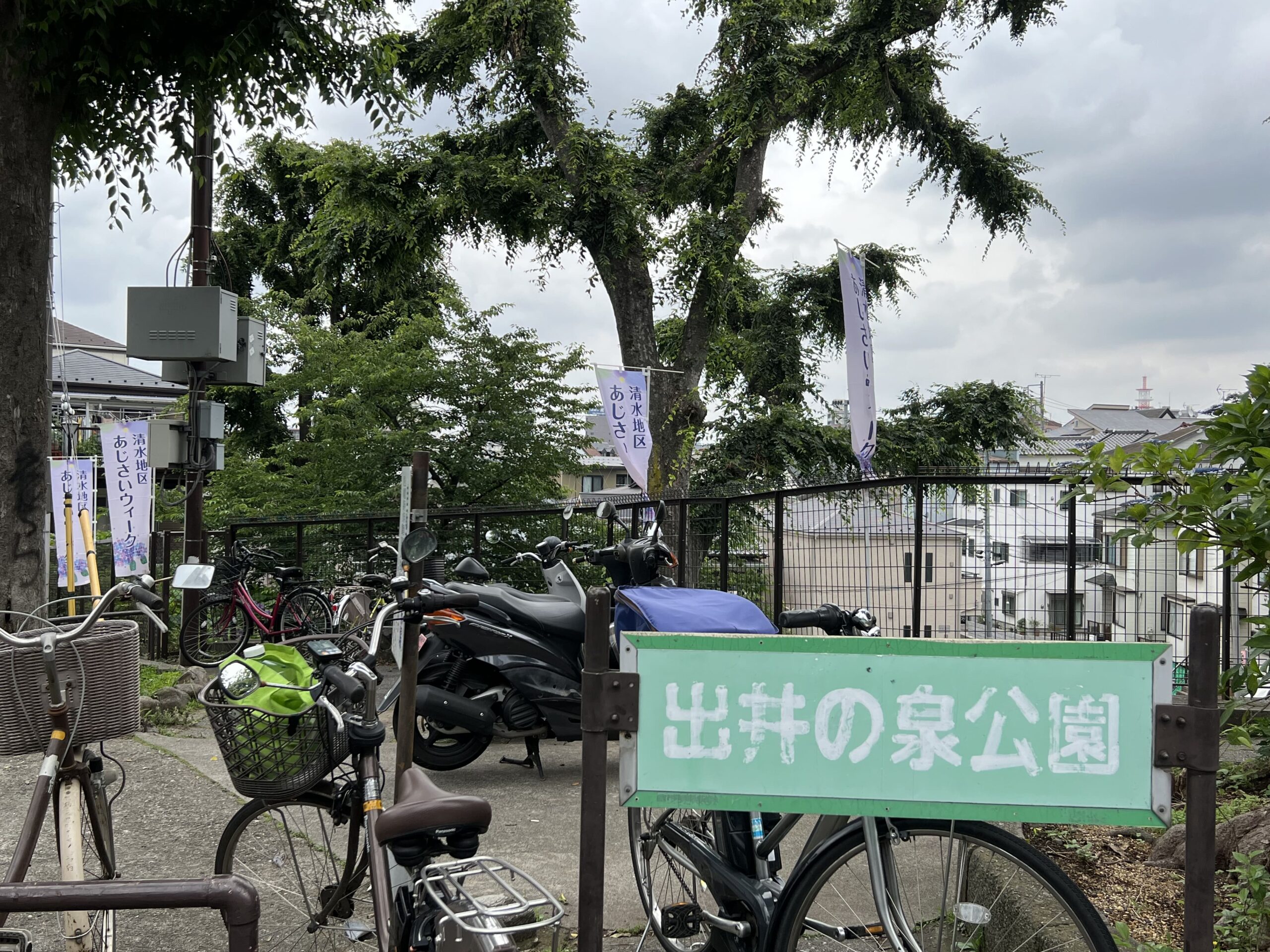 平成14年(2002年)に出井の泉公園(旧清水児童遊園)として改修され、その際に2,000本のあじさいが植栽されたそうで、以降「あじさいまつり」として開催されてきたまつりがコロナ禍により休止し、一昨年より、清水地区の各所で花を楽しむ「あじさいウィーク」としてリニューアルしたとのことです。