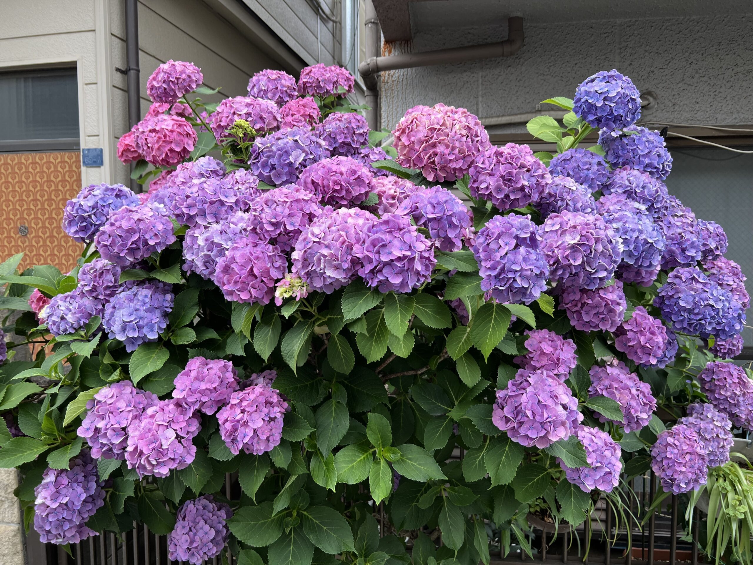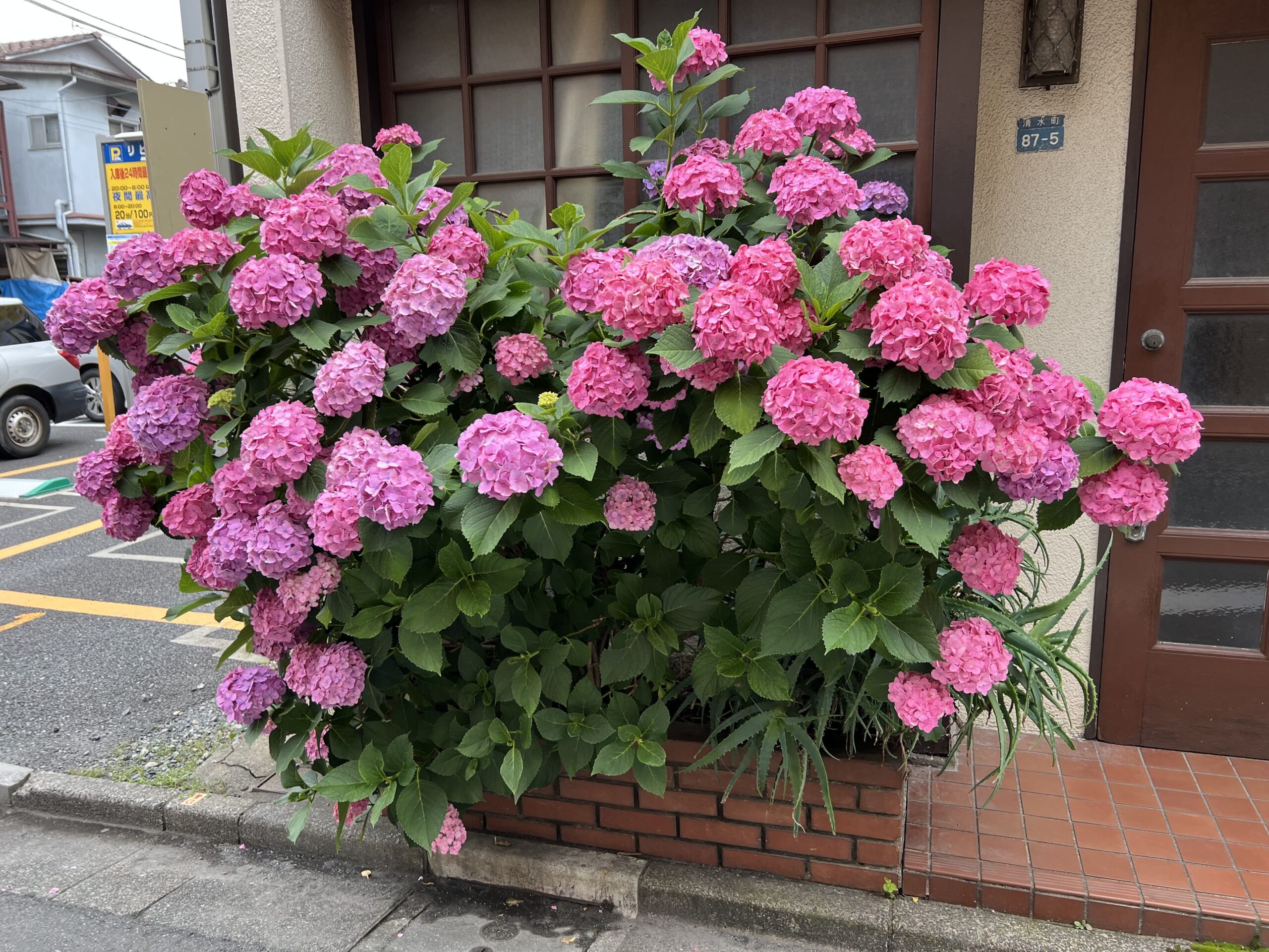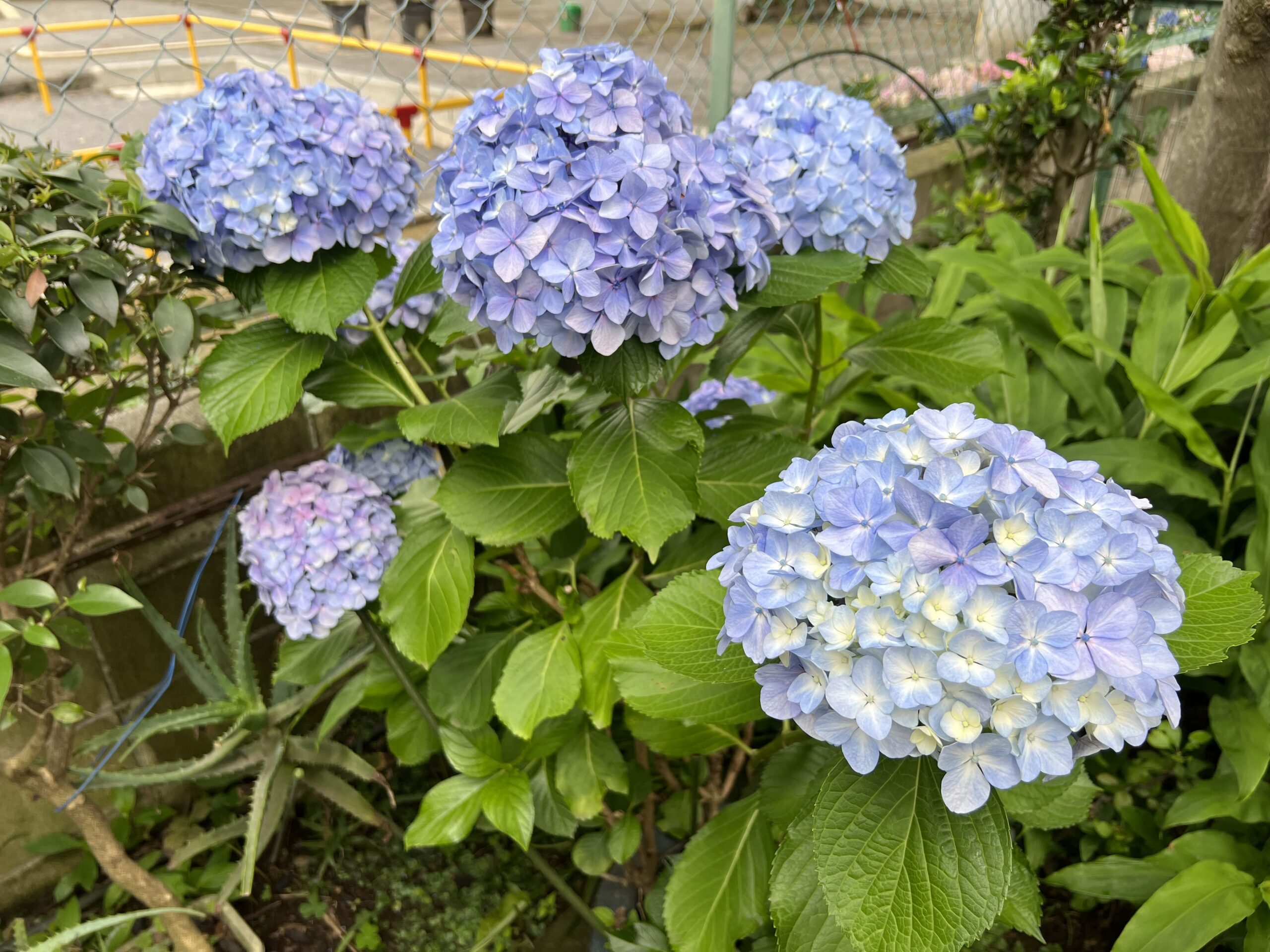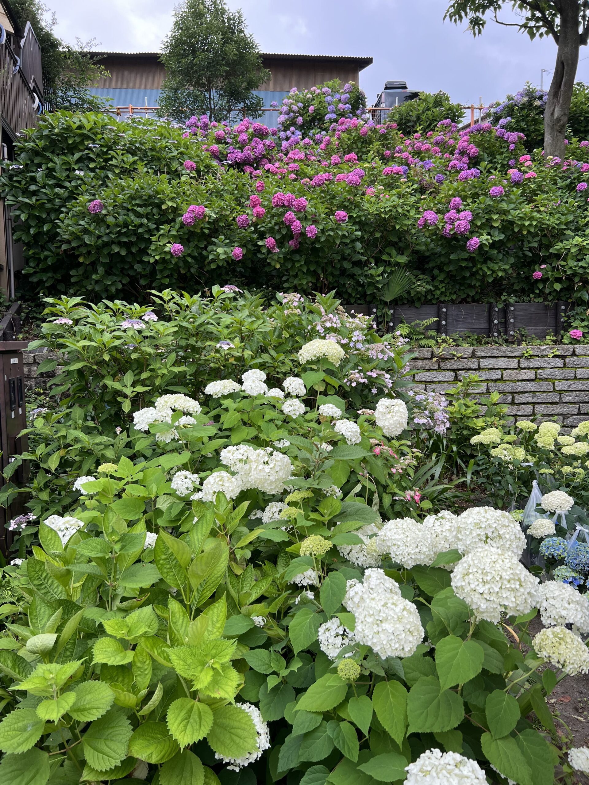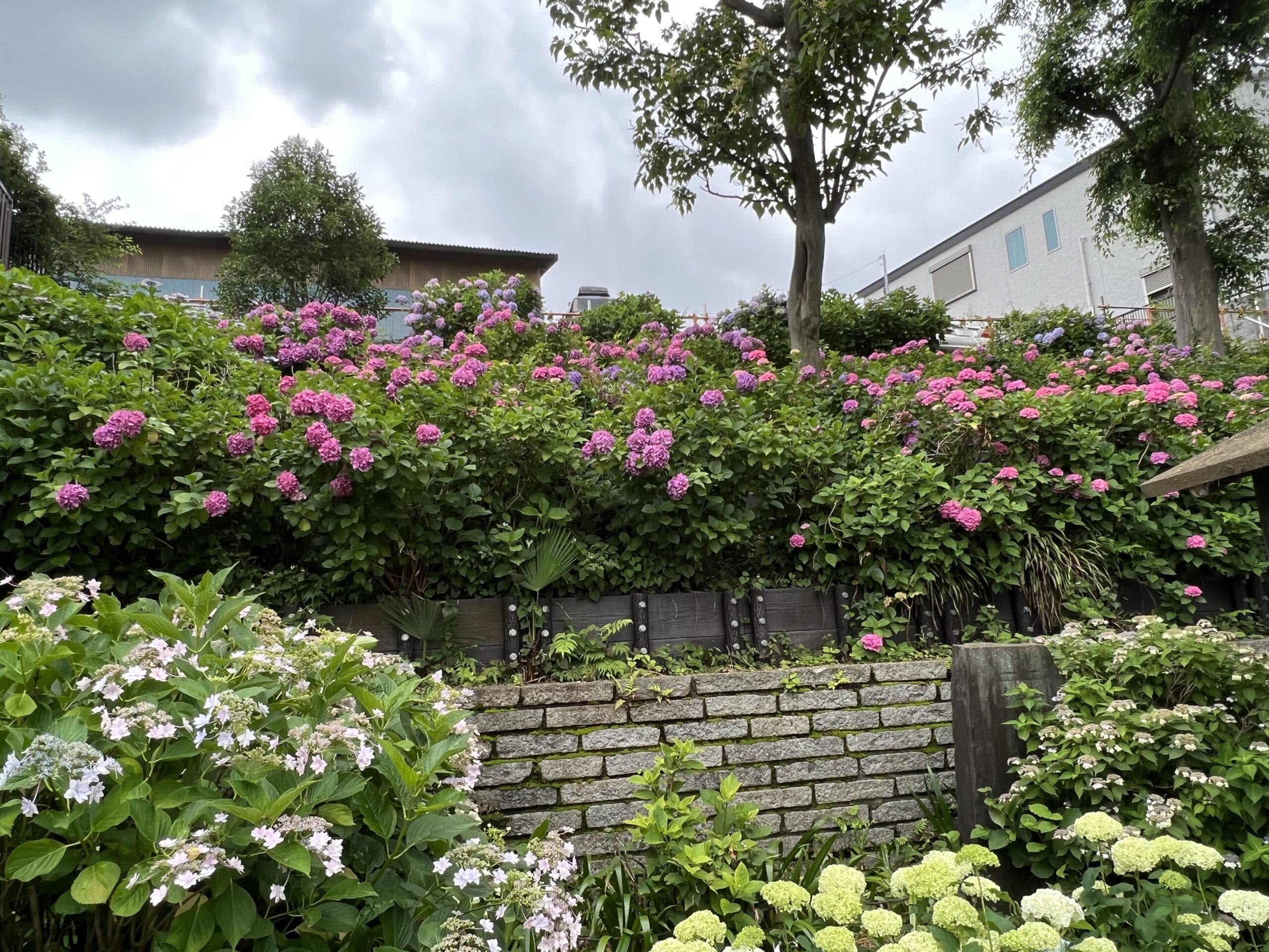 帰り道、「蓮沼児童遊園」「蓮沼第二児童遊園」「本蓮沼公園」「蓮沼公園」に寄ってみました。あじさいが多かったのは「本蓮沼公園」、次に「蓮沼公園」でした。「蓮沼第二児童遊園」は、あじさいウィークののぼりは立っているのですが、あじさいは一本も見当たらず残念でした。また、玄関先、庭先で見事にあじさいを咲かせているお宅が多いのも素晴らしいですね。