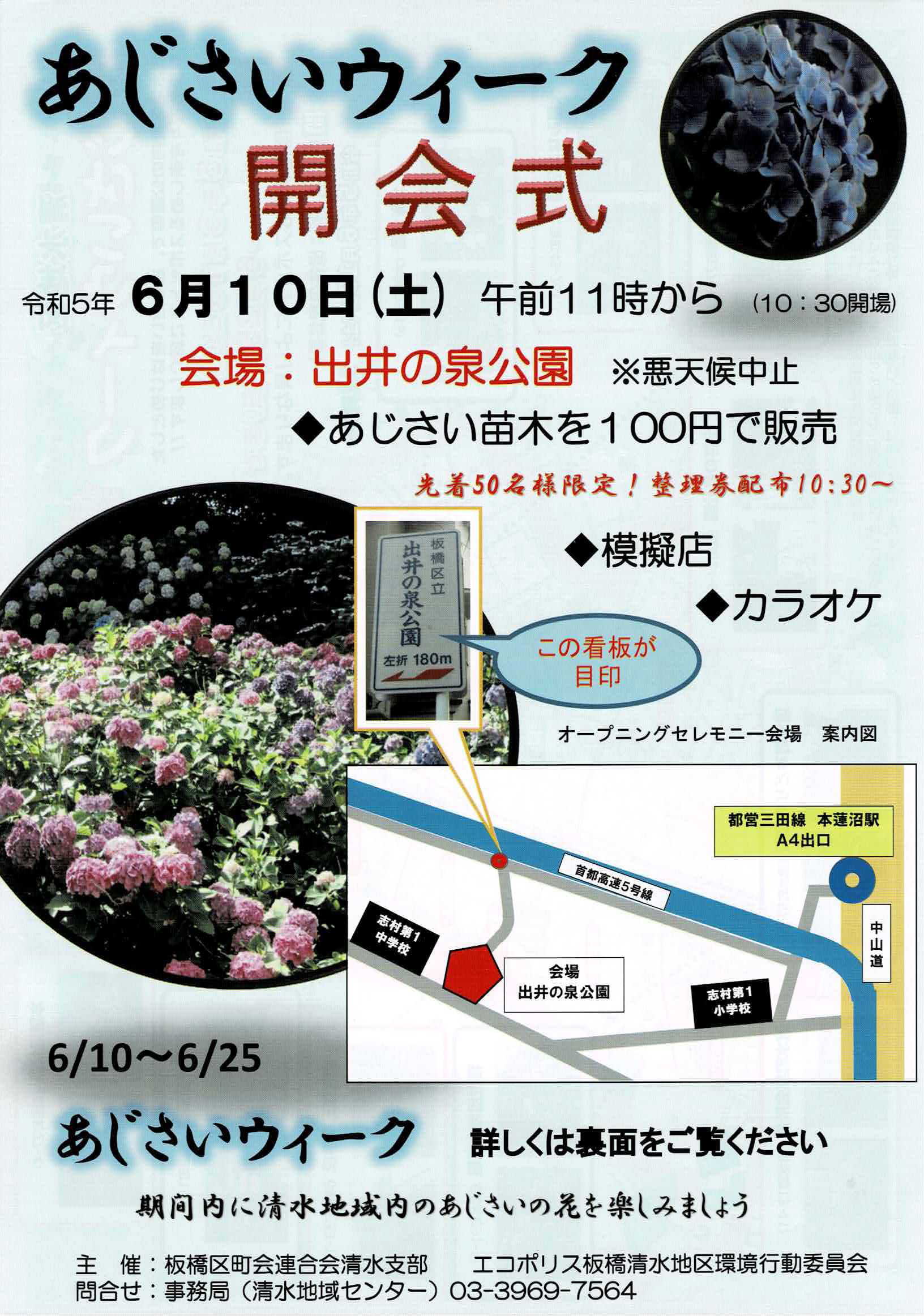 6月10日(土)11時から井出の泉公園(泉町24番)で「あじさいウィーク開会式」が行われました。