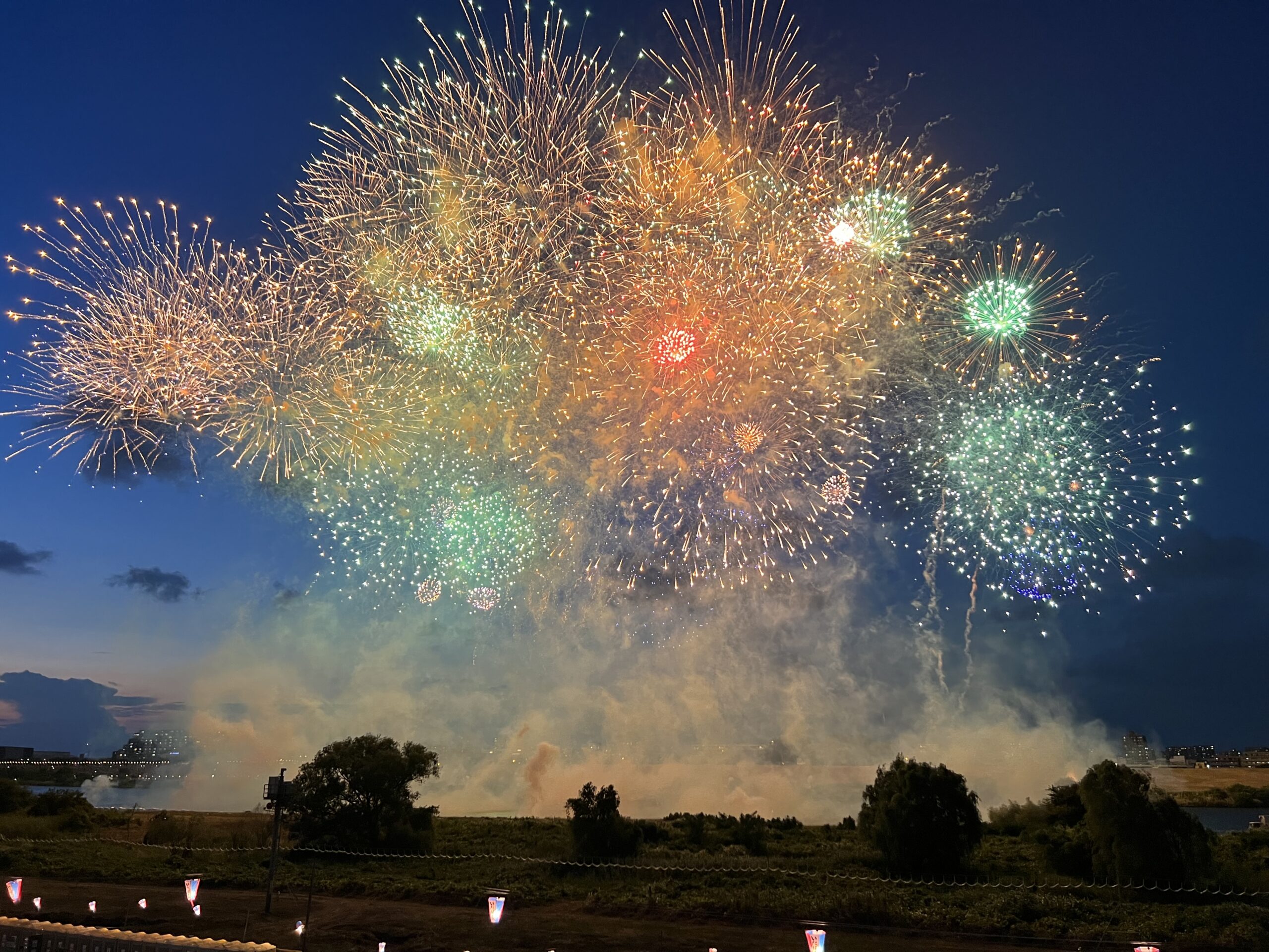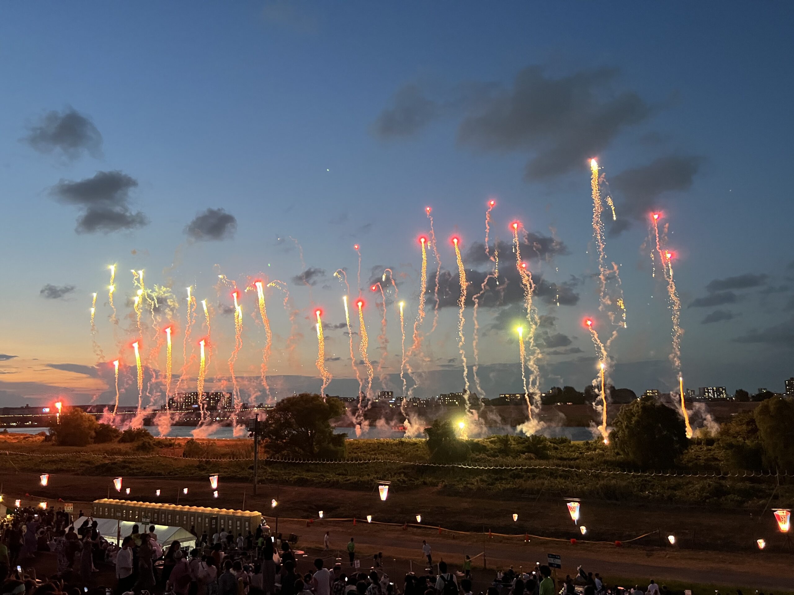 いたばし花火大会は中止が案内され、帰る方々もいましたが、対岸の戸田橋花火大会は予定通り最後まで花火は打ち上げられ、圧巻のエンディングのスターマインを見せてくれました。いたばしも中止になっていなければ、両岸でもっと凄いエンディングを見ることができたのかなと思ったりもしました。