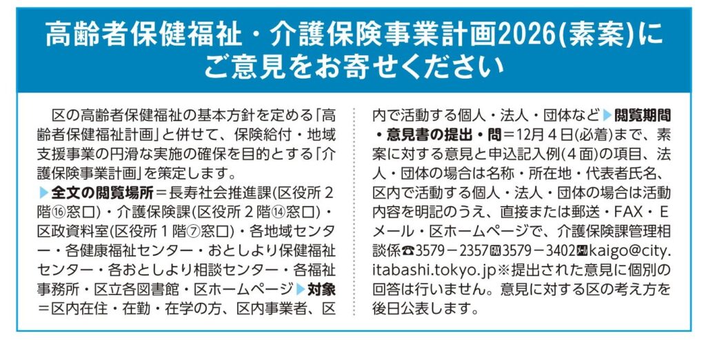 ■高齢者保健福祉・介護保険事業計画2026(素案)にご意見をお寄せください。