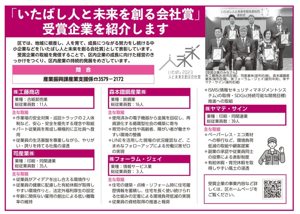 ■「いたばし人と未来を創る会社賞」受賞企業を紹介します